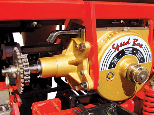 A Semeadora Plantio Direto Especial Arrozeira BALDAN SPDE-A, possui exclusiva caixa de engrenagem a banho de óleo, de troca rápida c/ 62 combinações de velocidades p/ regulagem de distribuição de adubo, Volante helicoidal que permite a regulagem milimétrica do rotor c/ maior possibilidade de variações na distribuição de sementes, Maior articulação nas rodas c/ pistões auxiliares de levante e sistema de cilindros regenerativo, permitindo levante por igual da máquina, Sistema de rodado c/ pneu 18.4x30x12L p/ menor índice de compactação ao solo de transferência de cargas da semeadora, Sistema de distribuição de sementes por rotores helicoidais e condutores p/ distribuição de adubo e semente e Carrinho c/ roda compactadora de ferro p/ melhor fechamento e compactação de semente. Possui Opcionais: Caixa de semente fina em aço carbono c/ tratamento epóxi, Sistema de mexedor de semente, Discos de corte estriado de 14" (standard) ou discos de corte liso e corrugado e Marcadores de linha hidráulico frontal de dupla ação c/ válvula sequencial.